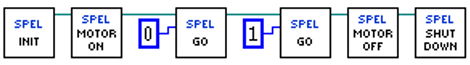 - From the Epson RC+ API - Robot Settings tool palette, drag the MotorOff VI onto the block diagram. Wire the Spel Ref Out output from the Go VI to the Spel Ref In input on the MotorOff VI.