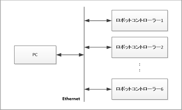 複数コントローラーを制御する場合の接続は、Ethernet通信を使用します。