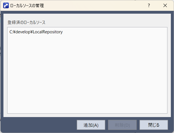 | h | ローカルソースのフォルダーを設定します。 ここで設定したフォルダーにExtensionのパッケージファイルを配置すると、[参照]タブに表示されるようになります。 ![]() |