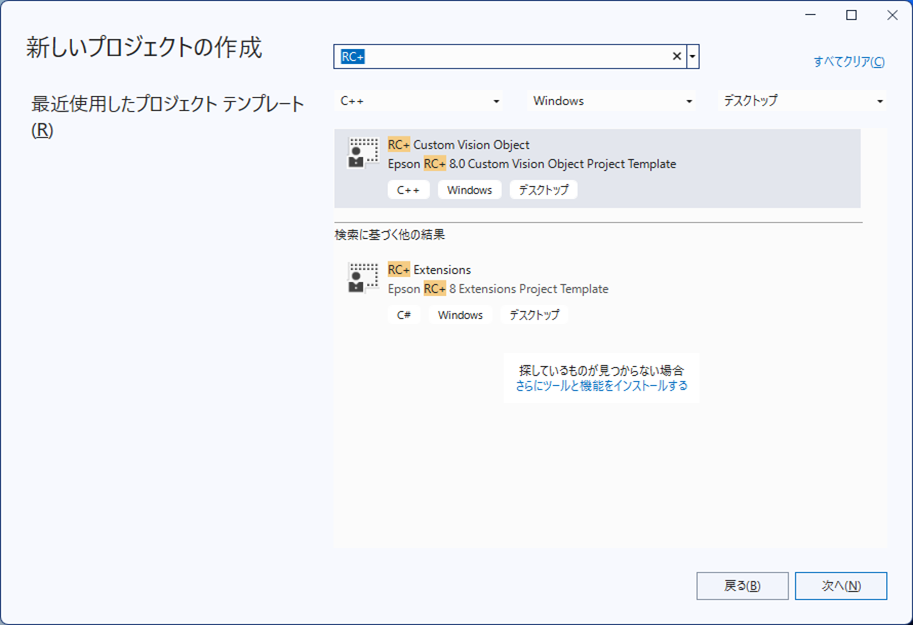 RC+ Extensions共通のVSIXにはカスタムビジョンオブジェクトのVisual Studioのプロジェクトテンプレート「RC+ Custom Vision Object」が含まれています。