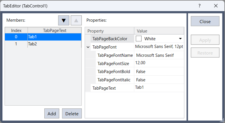 在設計表單時,可變更TabControl標籤頁面的文字字型。(字型名稱、樣式、大小)
