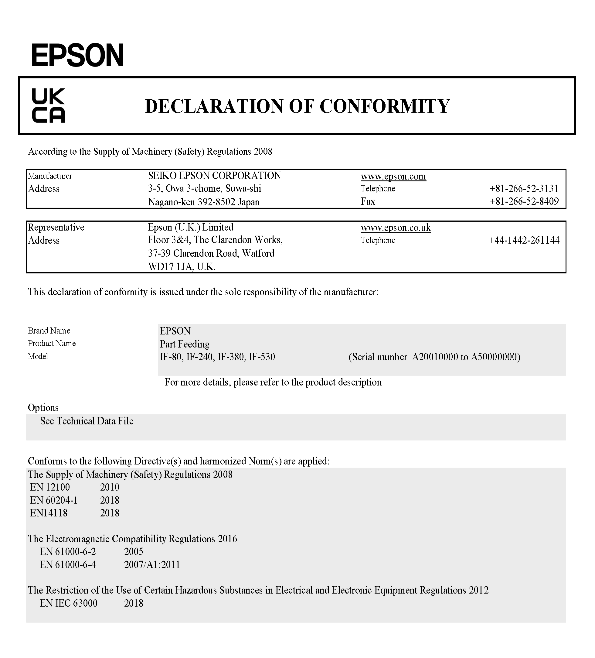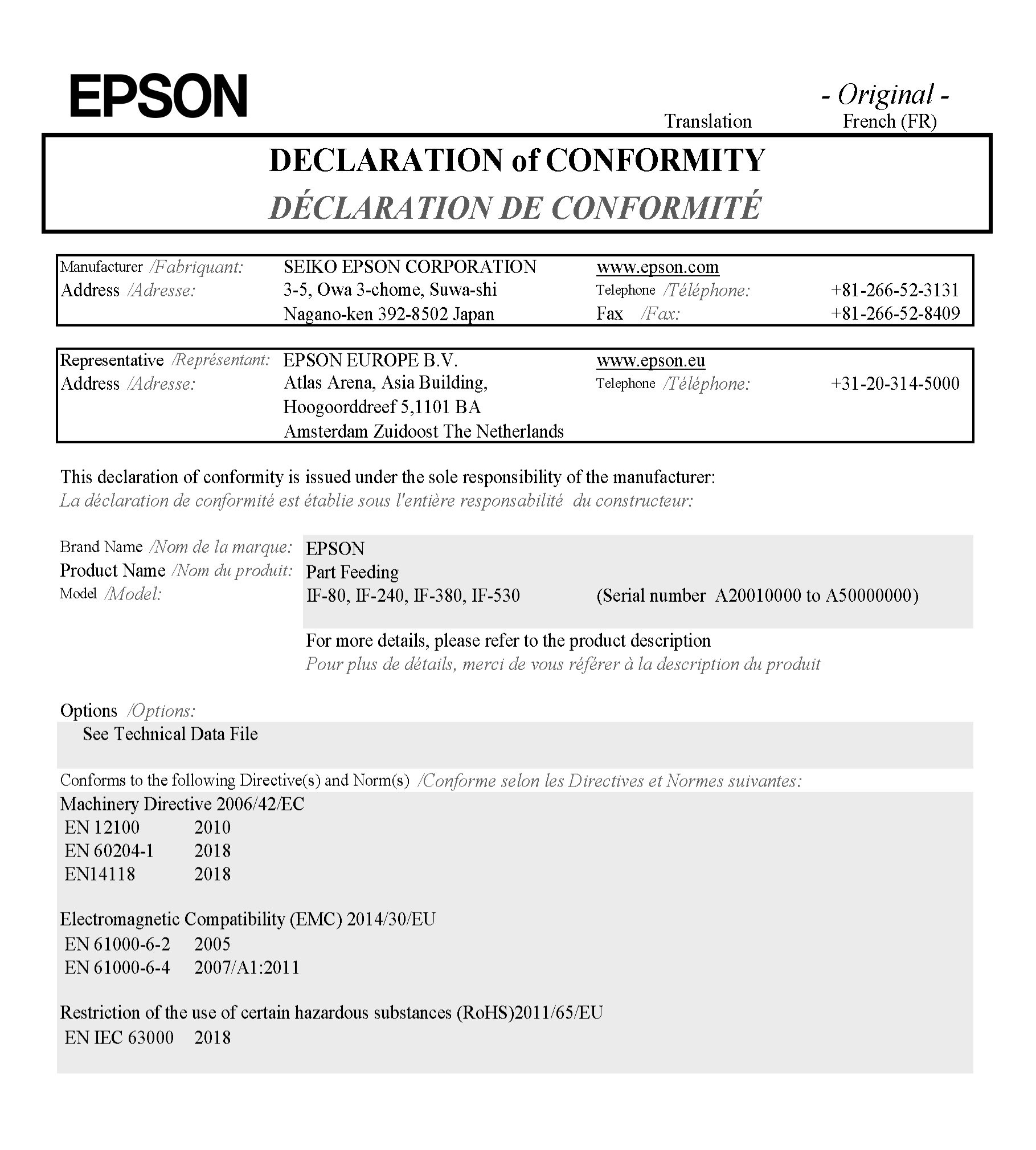 Part Feeding IF-80/IF-240/IF-380/IF-530