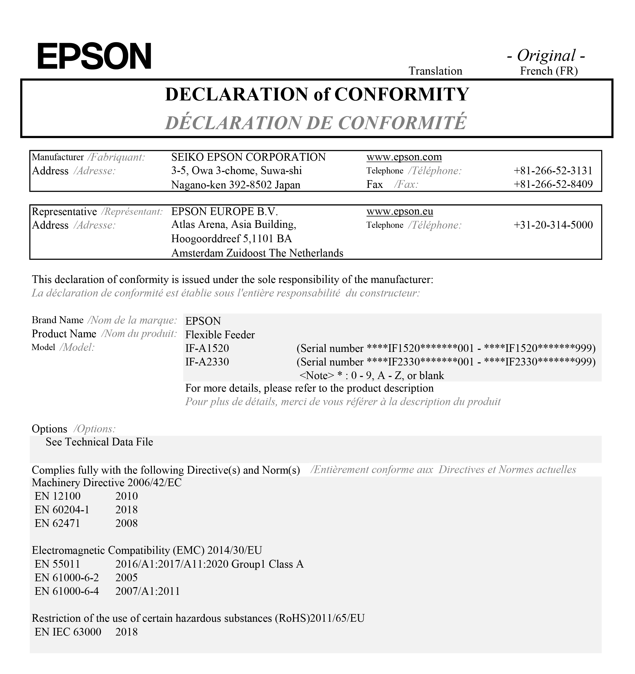 Part Feeding IF-A1520/IF-A2330