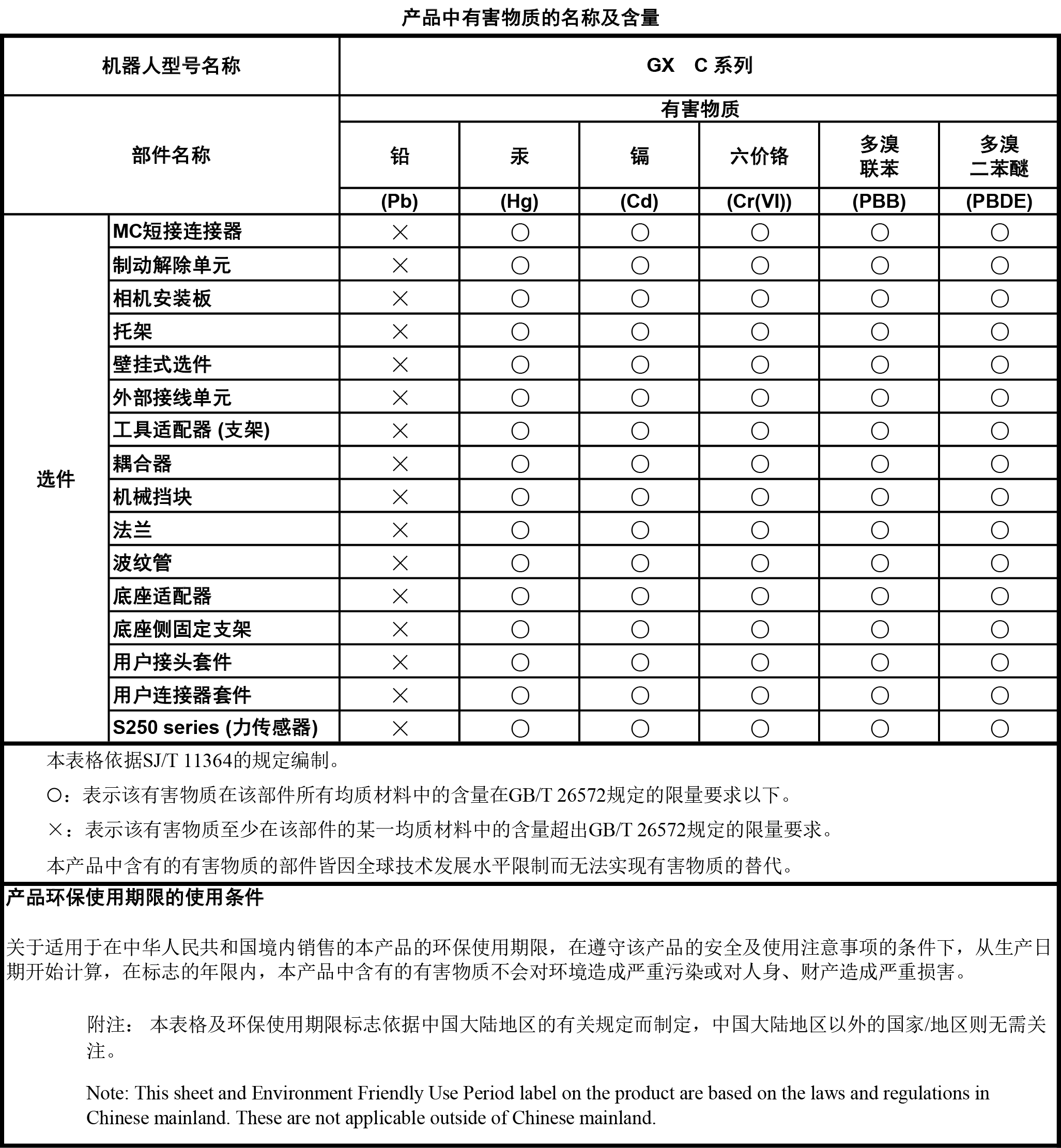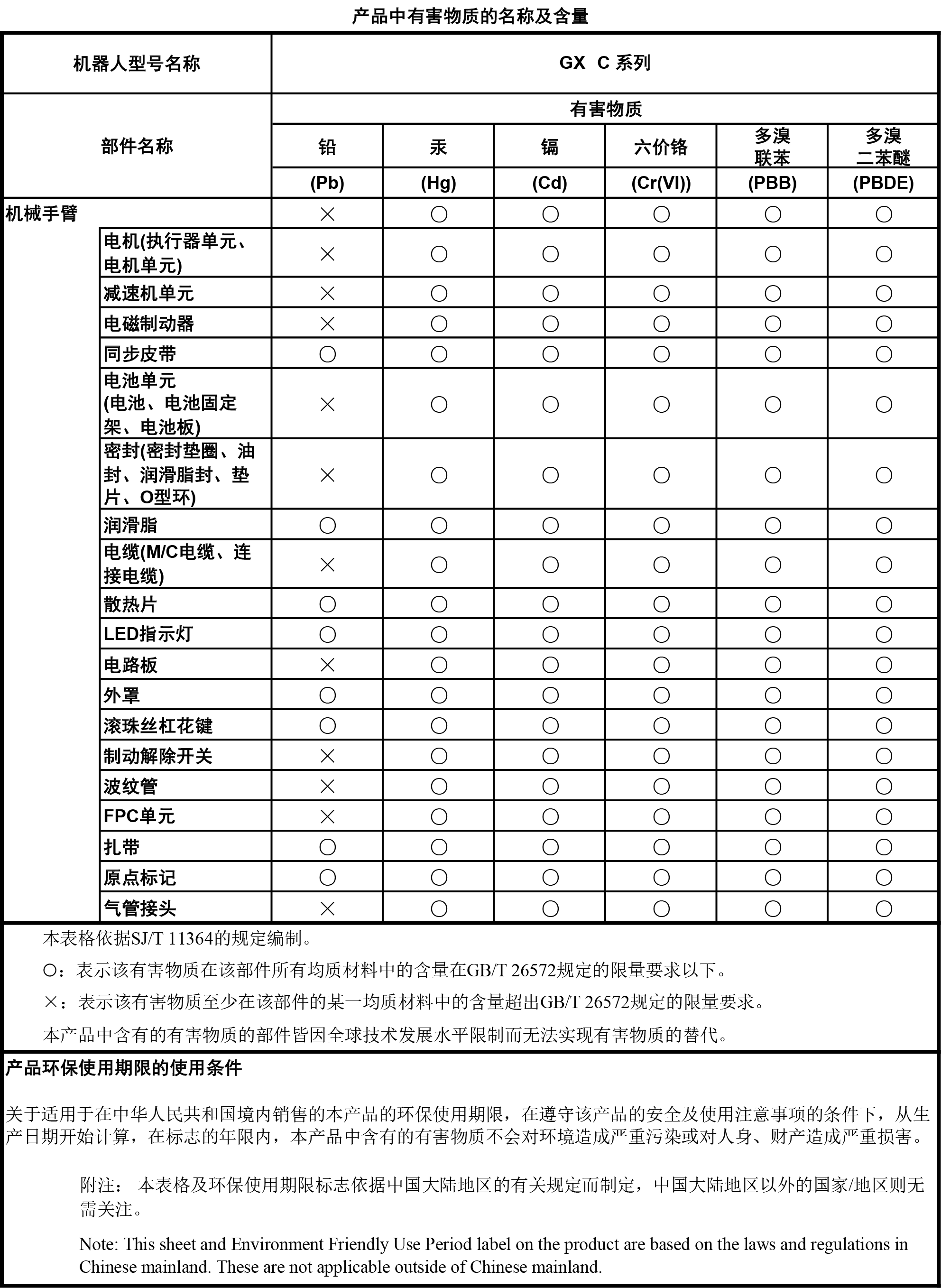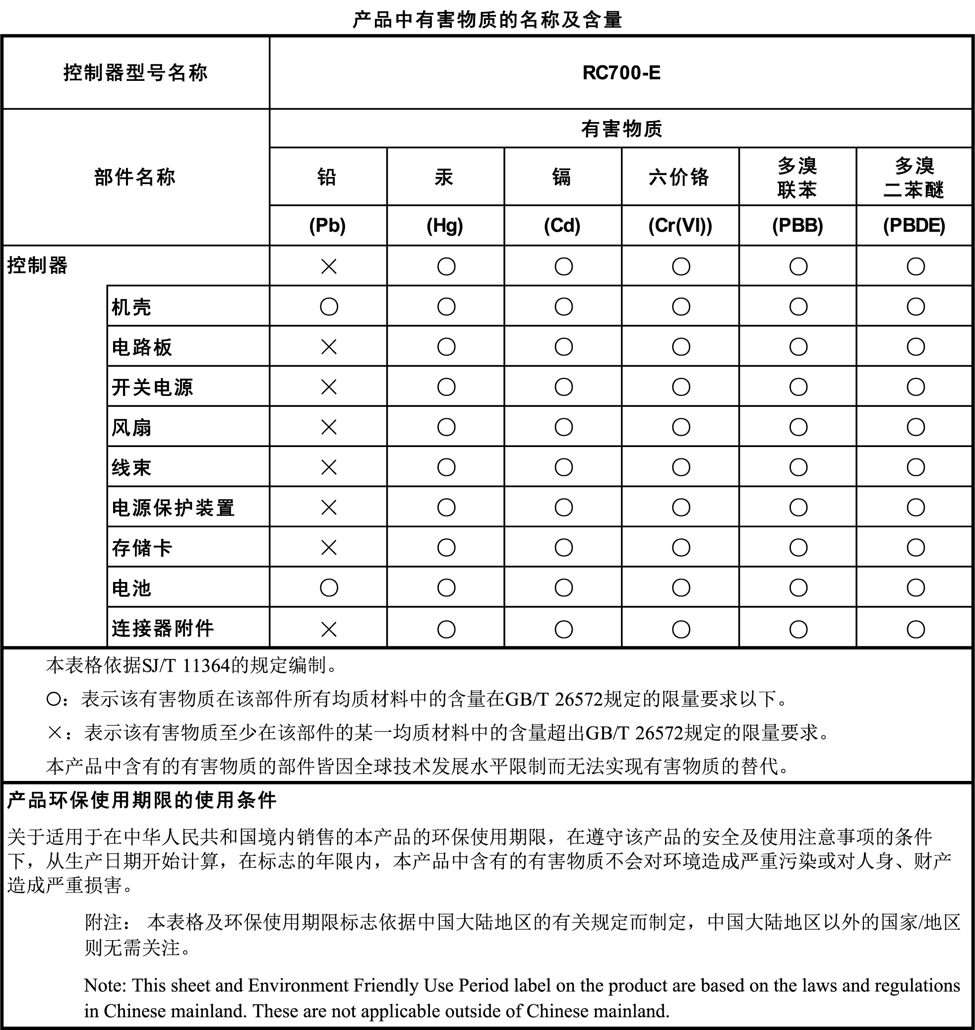 This table and the environmental protection expiration date labels on the product are based on the laws and regulations in mainland China, and are not applicable outside of mainland China.