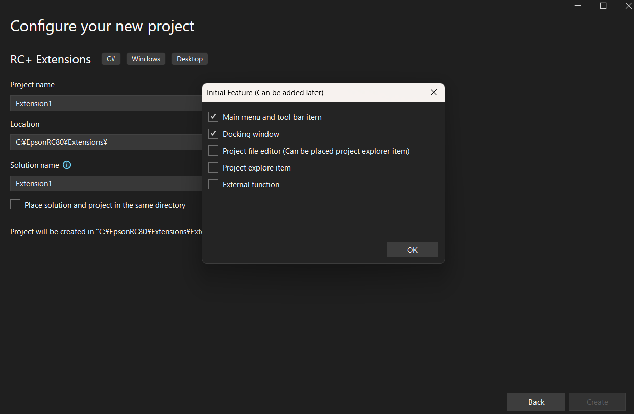 - Docking window: Add the dedicated Extension docking window to the Epson RC+ main window.