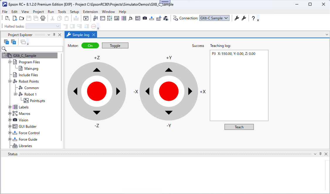 RC+ 配備了可由機器人管理器等呼叫的全功能「點動&示教」,但若建立 Extension,則可僅呼叫「點動&示教」所需功能,實現自定義點動面板(視窗)。